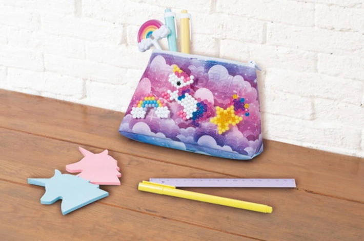 Maak een unieke school etui met Aquabeads! Maak je ontwerp, sproei met water en ze plakken! Plak het op de etui en laat je ontwerp aan je vrienden zien!