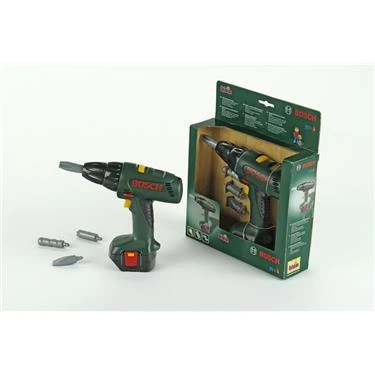 Bosch schroefmachine met verschillende draaiende boortjes en schroefbitjes.Zowel rechts- als linksdraaiend. Met realistische boor en schroefgeluiden en licht.