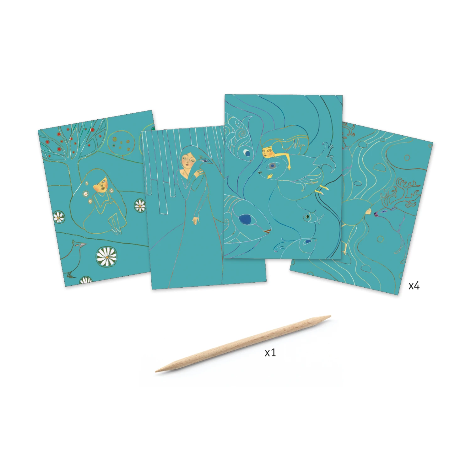 4 kraskaarten met stokje met afgeronde punt, geschikt voor kleine kinderen in het thema Ondine.
