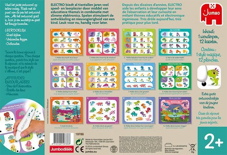 Electro biedt al tientallen jaren veel speel- en leerplezier door middel van educatieve thema’s in combinatie met slimme elektronica: een leuke manier om te leren over dinosaures, kleuren en nog veel meer! Ontdek alle wonderlijke dieren uit de dierenwereld met de Electro wonderpen! Met licht en geluid.