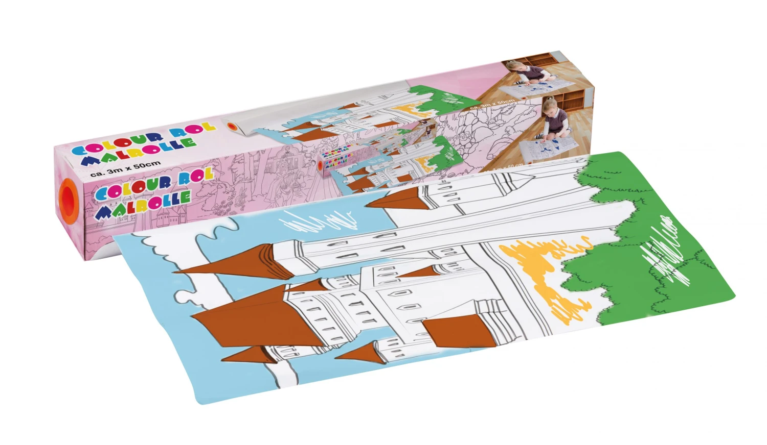 Meters en urenlang kleurplezier met deze handige meeneem-kleurrol! 3 meter tekeningen Voor alle creatievelingen onder ons!