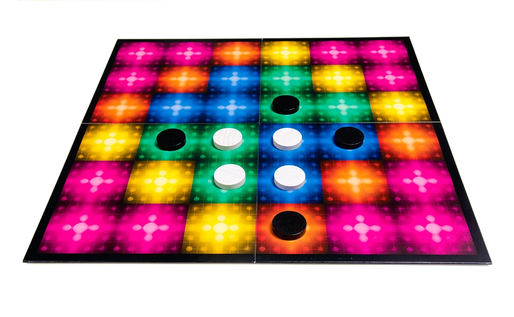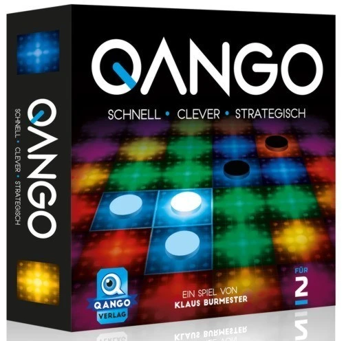 Qango is een snel strategisch bordspel. Probeer op het bord als eerste 3 aansluitende kleuren te bemachtigen, of een vierkant of 5 op een rij te maken. Qango heeft een dubbelzijdig speelbord voor meer mogelijkheden. Een geraffineerd spel dat soms maar 3 minuten duurt. De spelregels zijn bekend binnen enkele minuten. Een spontaan spelletje zorgt daarna voor veel plezier, maar speel je een wedstrijd op het hoogste niveau dan brengt het je ook heel veel hoofdbrekens.Wie maakt de beste keuzes; blokkeer je tegenstander en heb tegelijkertijd oog voor je eigen mogelijkheden.
